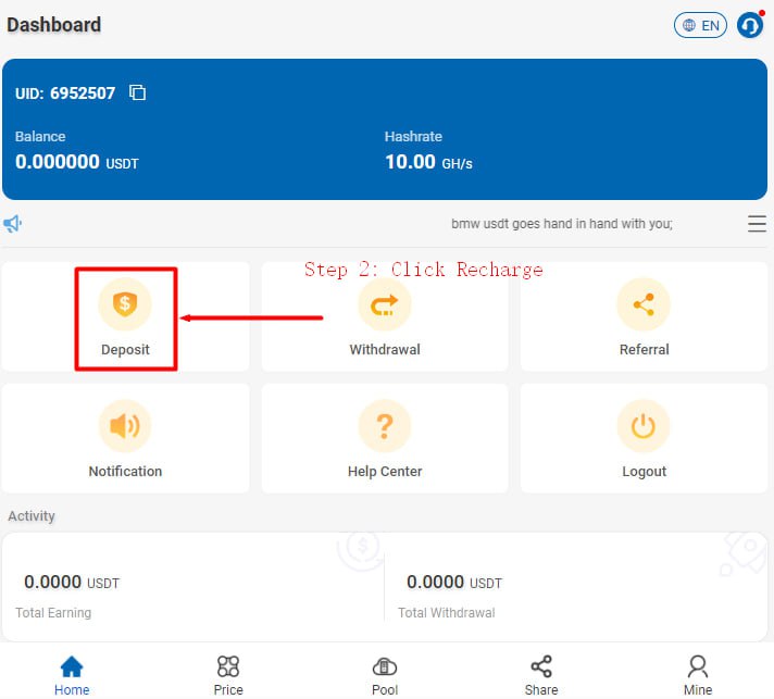 The minimum deposit amount is 2USDT, the minimum withdrawal amount is 10USDT, 1GH/S=1USDT)