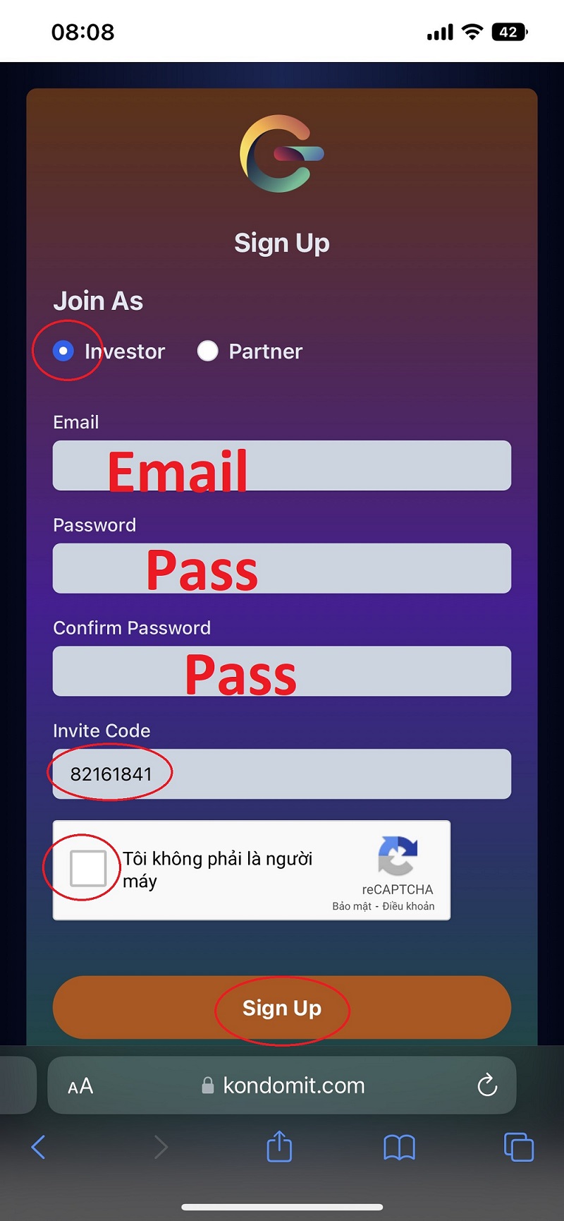 Register an account Kondomit.com