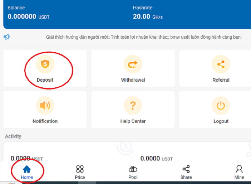 The minimum deposit amount is 2USDT, the minimum withdrawal amount is 10USDT, 1GH/S=1USDT)