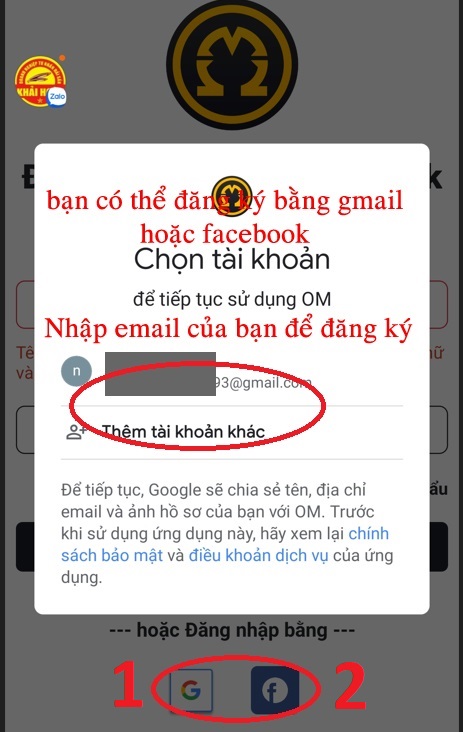 - Khi chọn đăng nhập bằng tài khoản Gmail sẽ xuất hiện cửa sổ sau (Với IPhone cơ bản cũng tương tự). Chúng ta có thể nhập gmail hoặc facebook