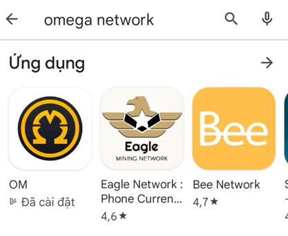 Việc tải App Omega này rất đơn giản, chúng ta chỉ cần vào Google Play của máy có hệ điều hành Androi và App Store của máy có hệ điều hành IOS. Sau đó gõ cụm từ "Omega Network" sẽ xuất hiện ứng dụng với biểu tượng như hình dưới.