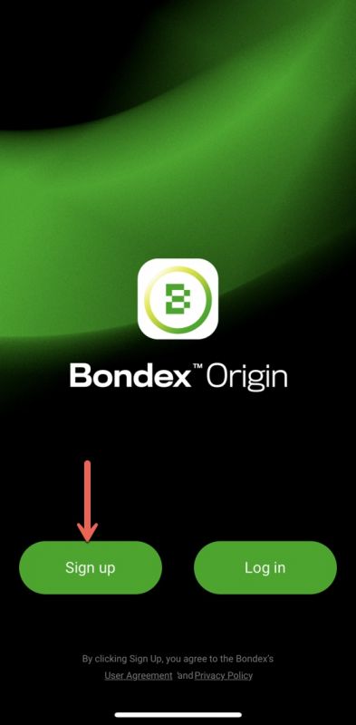Mở ứng dụng Bondex Origin và nhấn vào "Sign up".