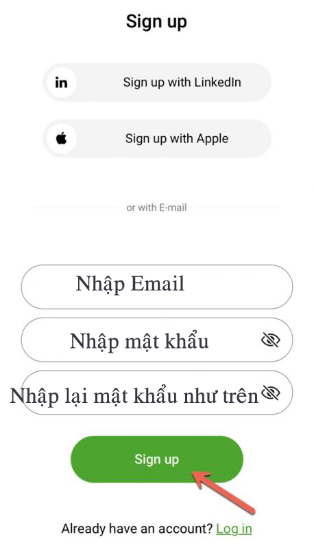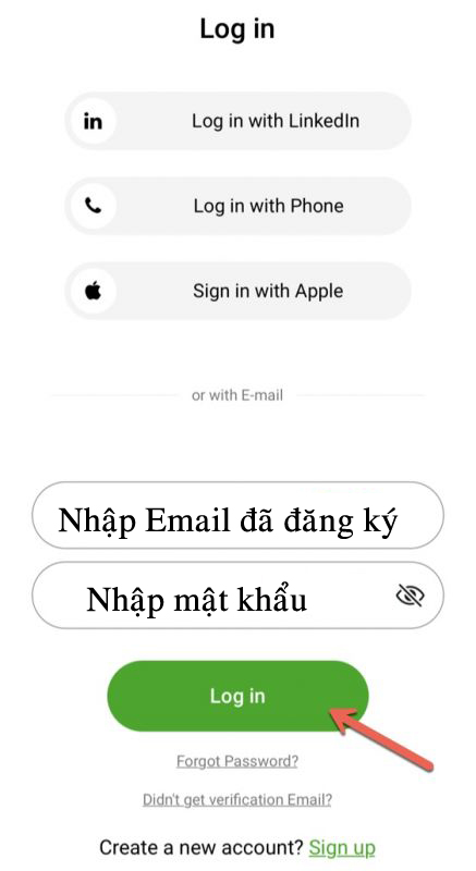 Nhập email và pas đã đăng ký ở trên
