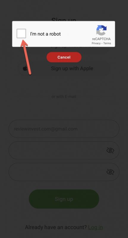 Nếu được hỏi capcha thì ta tích vào ô "I'm not a robot".
