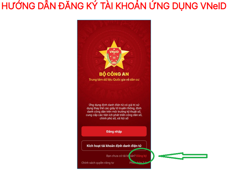Như vậy quá trình tải và mở ứng dụng đã hoàn tất, chúng ta tiến hành đăng ký tài khoản định danh điện tử