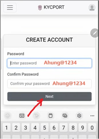 Bước 5: Nhập mật khẩu theo cú pháp chữ hoa + chữ thường+ ký tự đặc biệt + số (trên 8 ký tự), ví dụ: Aabc@123