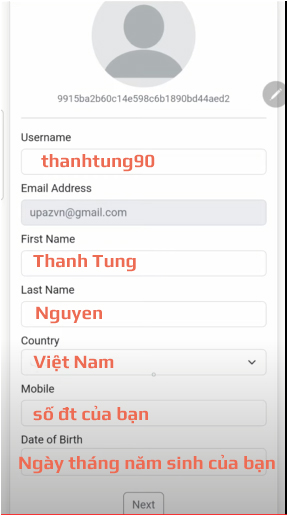 Bước 6: Điền các thông tin của bạn vào các from tương ứng như hình bên dưới và nhấn nút Next đăng ký
