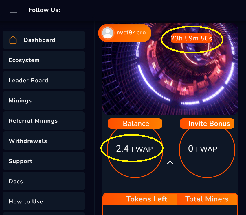 Nhớ điền mã mời nvcf94pro để nhận 2,4 coin FWAP và tăng tốc khai thác nhé