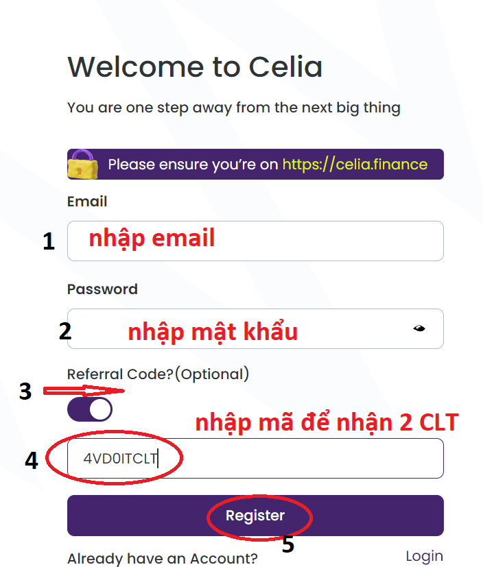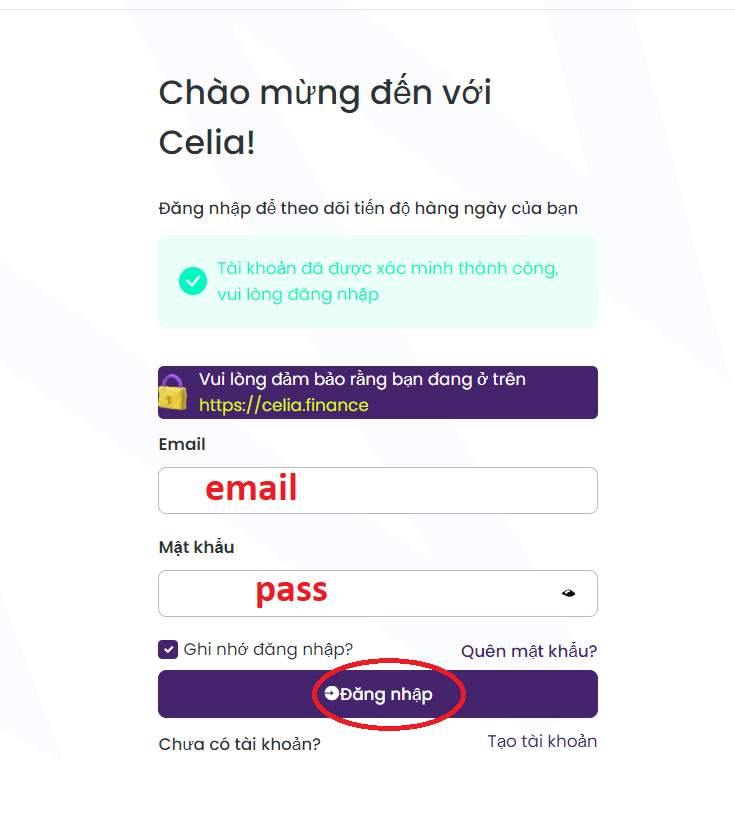 Truy cập link bên dưới để đăng ký tài khoản Celia