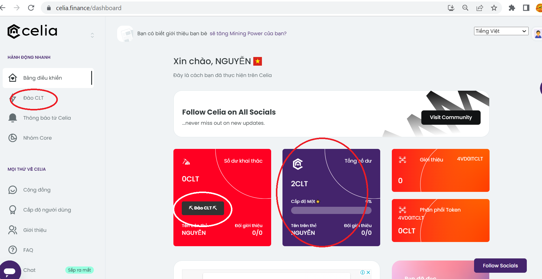 Đăng ký tạo tài khoản và khai thác đào CLT token trên Celia.finance