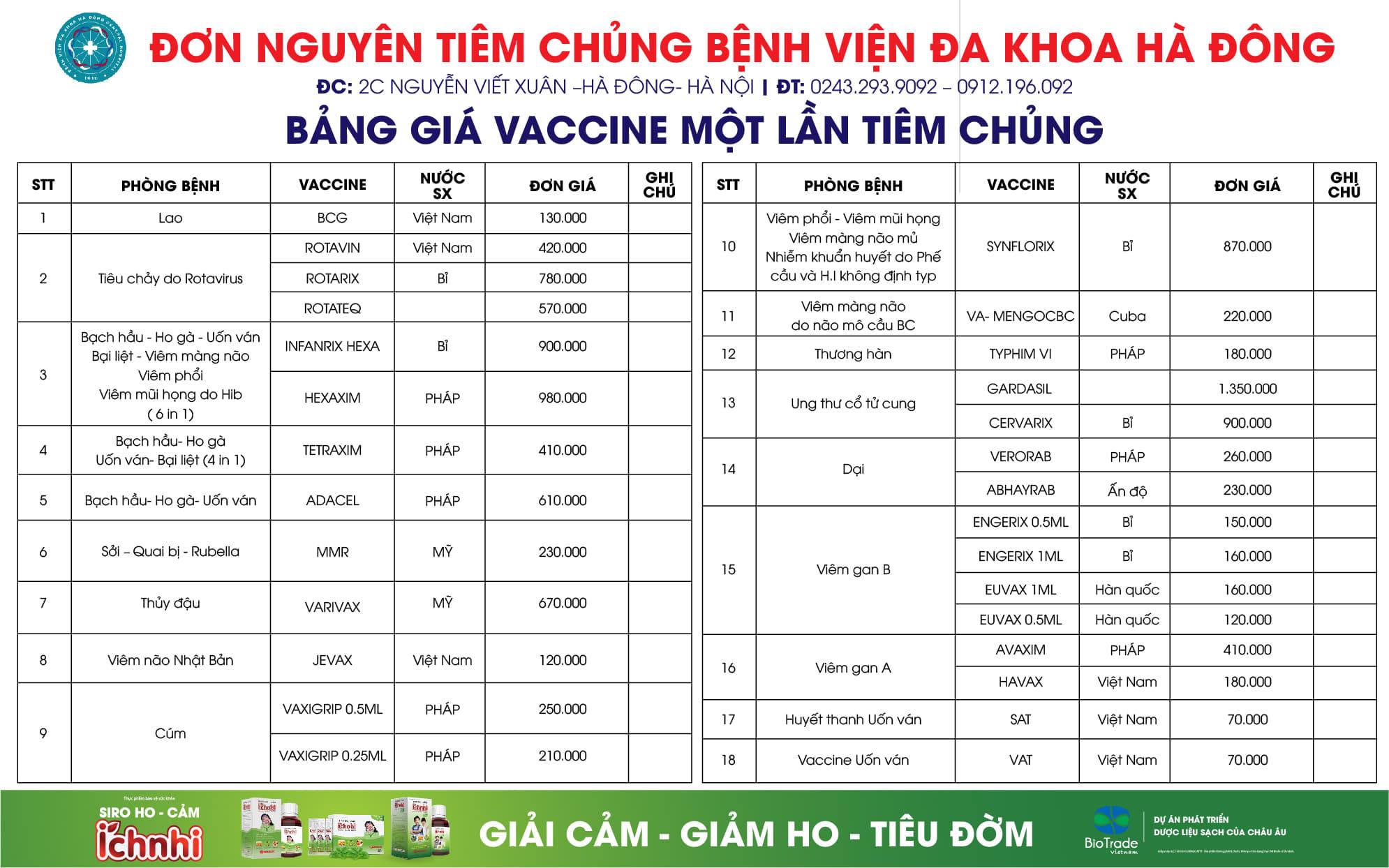 Danh mục và bảng giá Vaccine tại 2C Nguyễn Viết Xuân, Hà Đông, Hà Nội