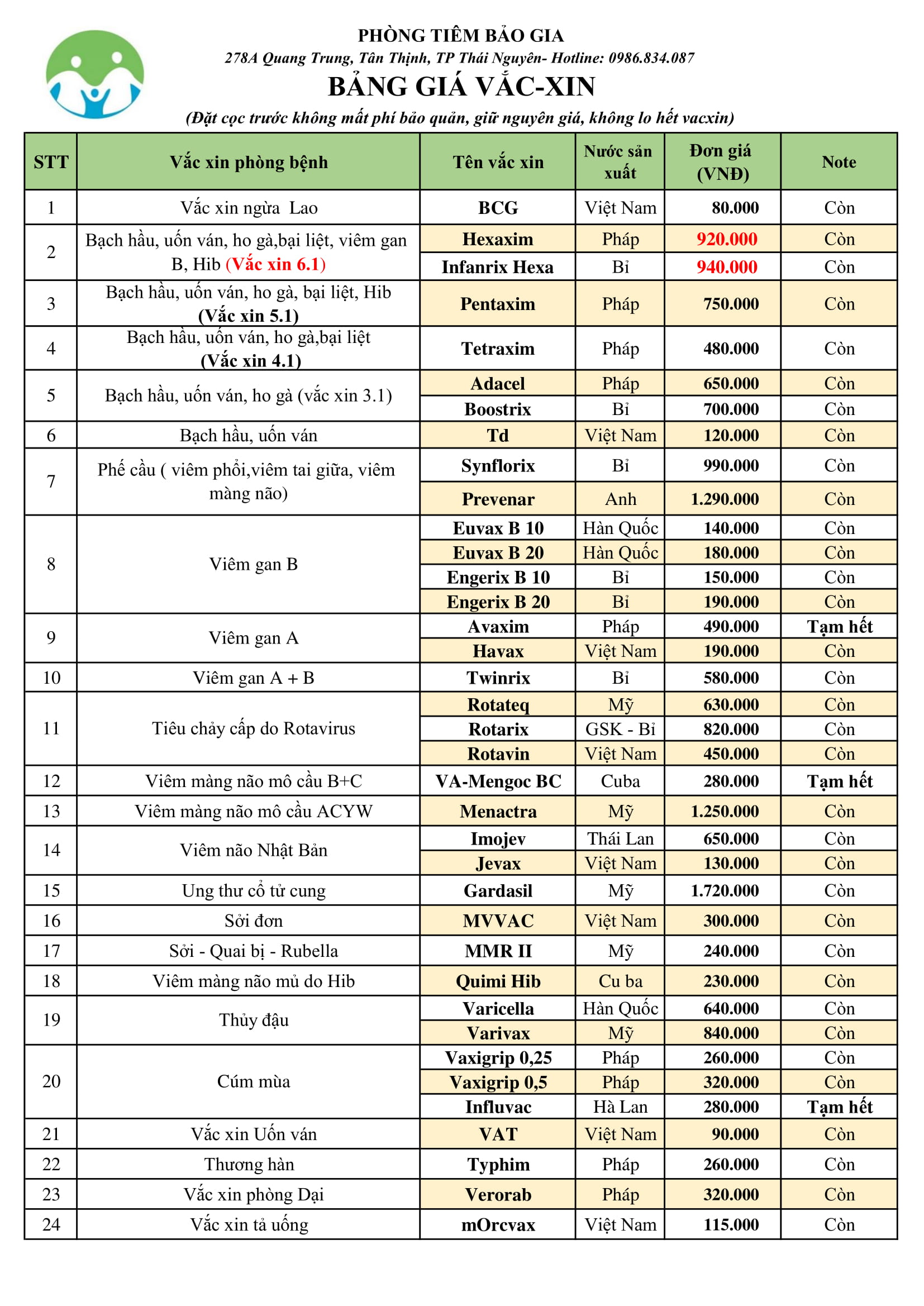 Địa chỉ của Phòng tiêm chủng vacxin Bảo Gia Thái Nguyên