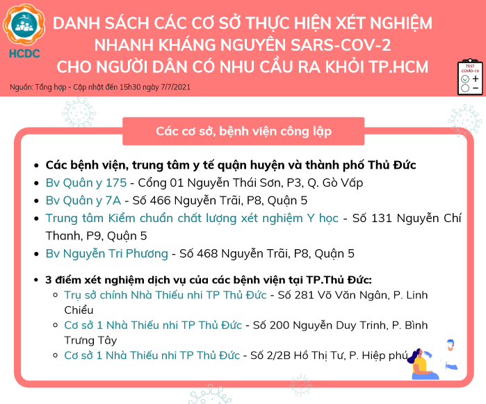 DANH SÁCH CÁC ĐƠN VỊ THỰC HIỆN XÉT NGHIỆM COVID19 TẠI THÀNH PHỐ HỒ CHÍ MINH