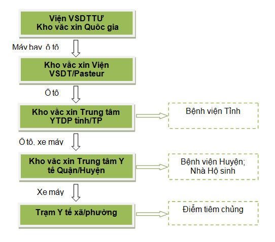 - Xây dựng và duy trì hoạt động thường xuyên của hệ thống “Dây chuyền lạnh” từ tuyến trung ương (kho vắc xin quốc gia tại Viện VSDTTƯ) tới tuyến khu vực, tỉnh, huyện, xã và từng điểm tiêm.