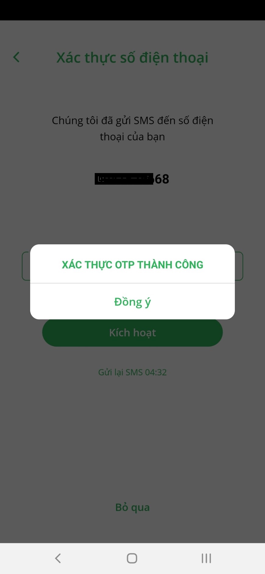 - NHẬP SỐ OTP VÀO Ô "NHẬP MÃ XÁC THỰC" SAU ĐÓ NHẤN KÍCH HOẠT